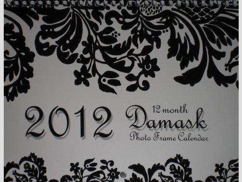 Cheap 2012 Black & White Damask Photo Frame Mini Wall Calendar Features