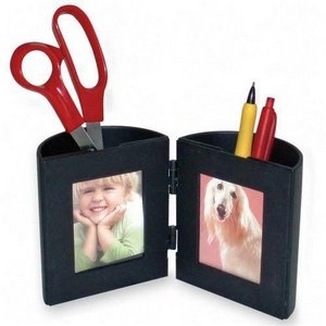 deflect-o Pencil Cup with Photo Frames, Black, 3.5 x 3 x 4 Inches (35004)